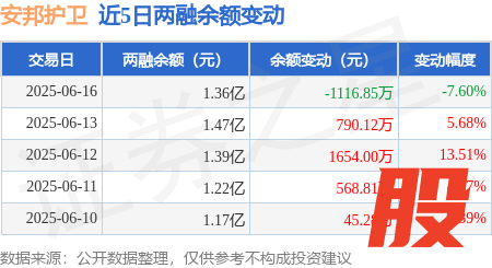 本站消息,6月16日,安邦护卫(603373)融资买入662.21万元富瑞众投,融资偿还1576.62万元,融资净卖出914.4万元,融资余额1.36亿元,近20个交易日中有11个交易日出现融资净买入。