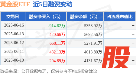 本站消息日天金策略,6月16日,黄金股ETF(517520)融资买入830.5万元,融资偿还1745.13万元,融资净卖出914.62万元,融资余额5353.92万元。